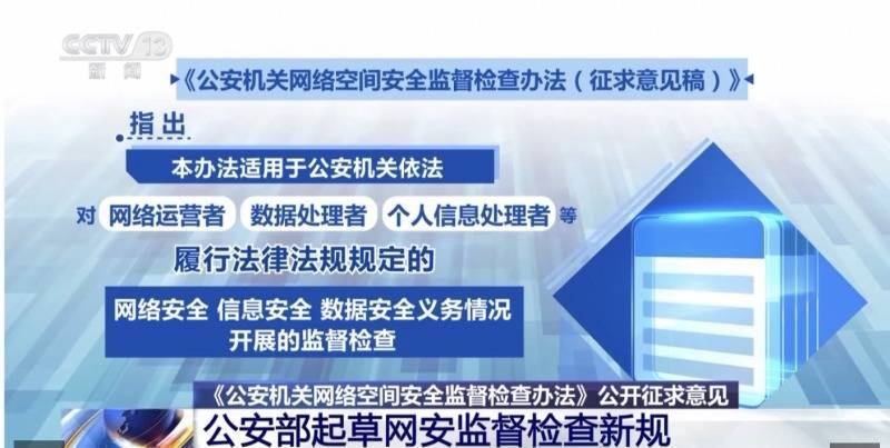 征求见识稿指出,本宗旨适用于公安机关照章对聚集运营者、数据处理者、个东谈主信息处理者等执行法律法例章程的聚集安全、信息安全、数据安全义务情况开展的监督搜检。